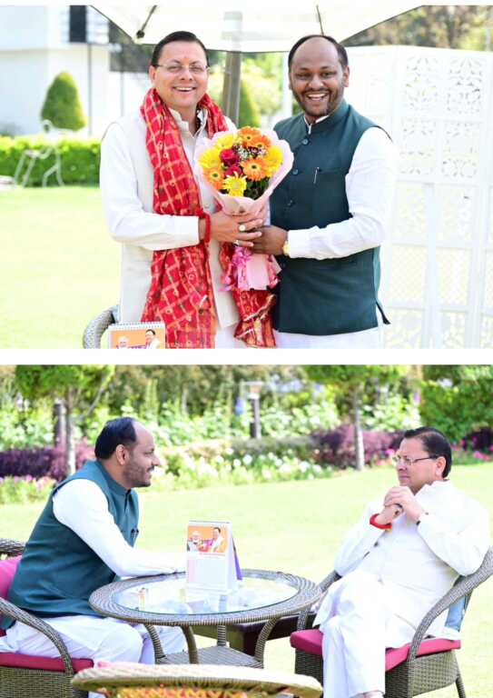 उत्तराखंड सरकार के सफल 4 वर्ष पूर्ण होने के उपलक्ष्य में भाजपा युवा मोर्चा के प्रदेश महामंत्री दीपेंद्र सिंह कोश्यारी ने मुख्यमंत्री पुष्कर सिंह धामी से उनके देहरादून स्थित मुख्यमंत्री आवास पर शिष्टाचार भेंट की। यह मुलाकात सौहार्दपूर्ण वातावरण में संपन्न हुई, जिसमें क्षेत्रीय विकास और जनकल्याण से जुड़े महत्वपूर्ण विषयों पर विस्तार से चर्चा की गई।