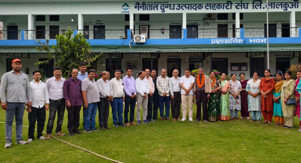 लालकुआं। नैनीताल आँचल दुग्ध उत्पादक सहकारी संघ लिमिटेड के उपार्जन अनुभाग में कार्यरत क्षेत्र पर्यवेक्षक नंदन गिरी गोस्वामी के 22 वर्षों की उल्लेखनीय सेवा पूर्ण करने पर सेवानिवृत्ति के अवसर पर प्रशासनिक भवन परिसर में भावभीना विदाई समारोह आयोजित किया गया। इस दौरान दुग्ध संघ के अध्यक्ष मुकेश बोरा, अधिकारियों, कर्मचारियों एवं सहकर्मियों ने उन्हें सम्मानित करते हुए उनके उज्ज्वल भविष्य की कामना की।