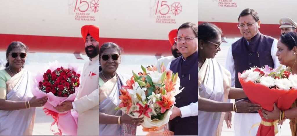 देहरादून। उत्तराखंड आगमन पर राष्ट्रपति द्रौपदी मुर्मु का जौलीग्रांट एयरपोर्ट पर भव्य स्वागत किया गया।
