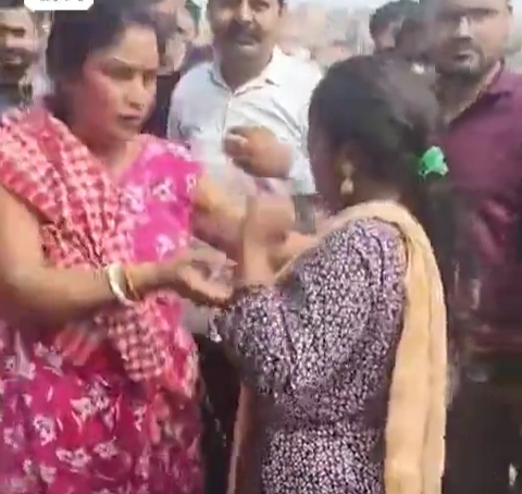 शोर मचते ही मौके पर बड़ी संख्या में लोग इकट्ठा हो गए। आक्रोशित भीड़ ने महिला की एक नहीं सुनी और उसे पकड़कर बिजली के पोल से बांध दिया। वायरल वीडियो में देखा जा सकता है कि कुछ लोग और स्थानीय महिलाएं उसे थप्पड़ और लात-घूंसे मार रहे हैं।