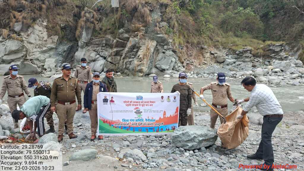 नैनीताल। जिला गंगा समिति, नैनीताल के नेतृत्व में सोमवार को काठगोदाम स्थित चित्रशिला घाट पर विशाल स्वच्छता एवं जन-जागरूकता अभियान आयोजित किया गया। इस अभियान में गौला रेंज, तराई पूर्वी वन प्रभाग हल्द्वानी, नगर निगम हल्द्वानी-काठगोदाम और स्थानीय लोगों ने बढ़-चढ़कर हिस्सा लिया।