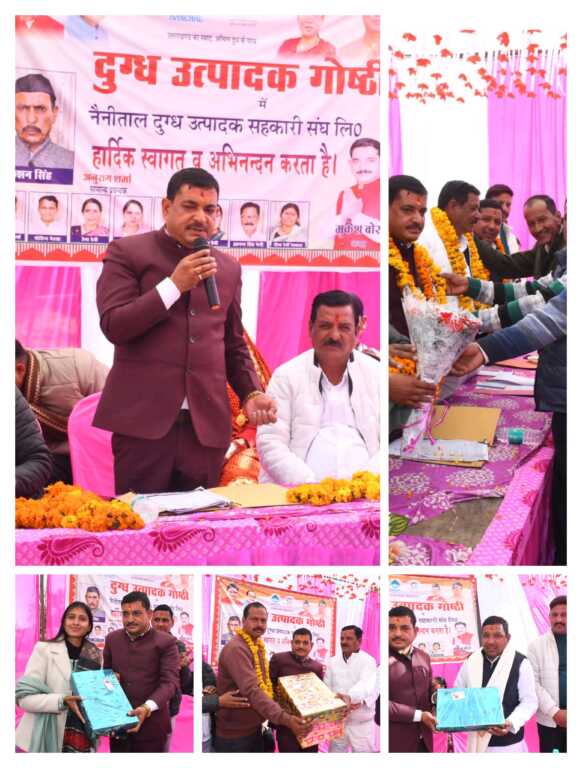 लालकुआं नैनीताल दुग्ध उत्पादक सहकारी संघ लिमिटेड द्वारा दुग्ध उत्पादकों को सजग, प्रतिबद्ध एवं आत्मनिर्भर बनाने के उद्देश्य से भव्य गोष्ठी कार्यक्रम का आयोजन किया गया। कार्यक्रम की अध्यक्षता दुग्ध संघ अध्यक्ष मुकेश बोरा ने की। गोष्ठी में क्षेत्र की 7 दुग्ध समितियों से जुड़े 300 से अधिक दुग्ध उत्पादकों ने उत्साहपूर्वक सहभागिता की।